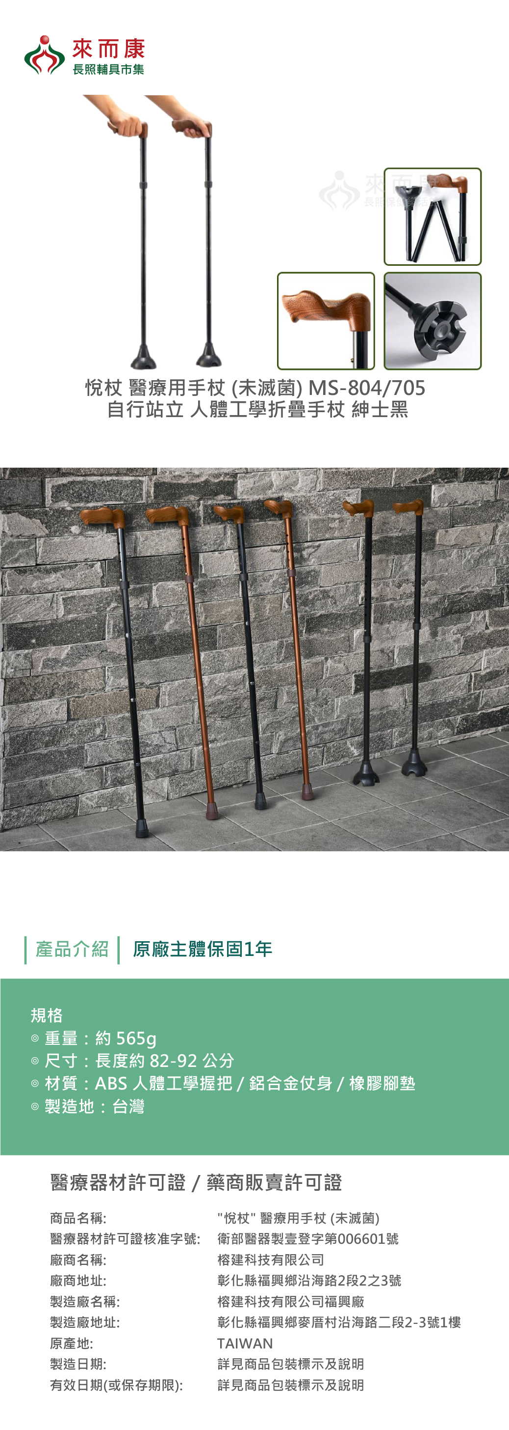 Merry Sticks 悅杖 醫療用手杖(未滅菌) MS-804/705-BK 自行站立 人體工學折疊手杖 紳士黑 拐杖 手杖 MS804705BK