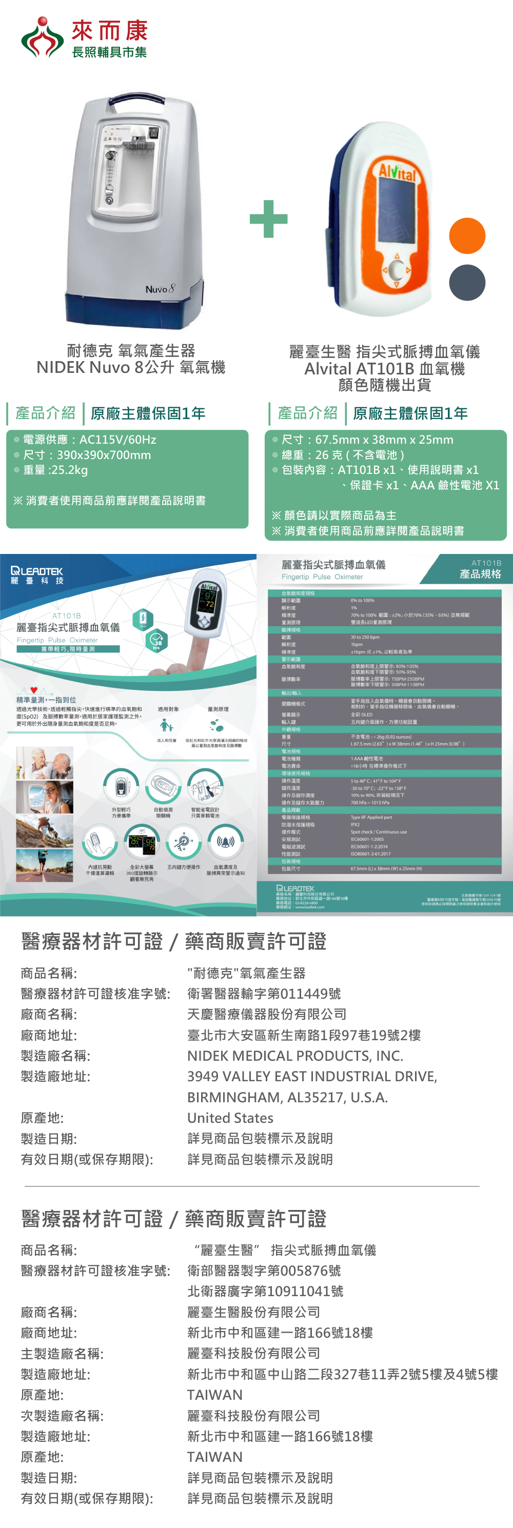 NIDEK Nuvo 8公升 氧氣機 + AT101B 血氧儀(顏色隨機):1030186+1030346