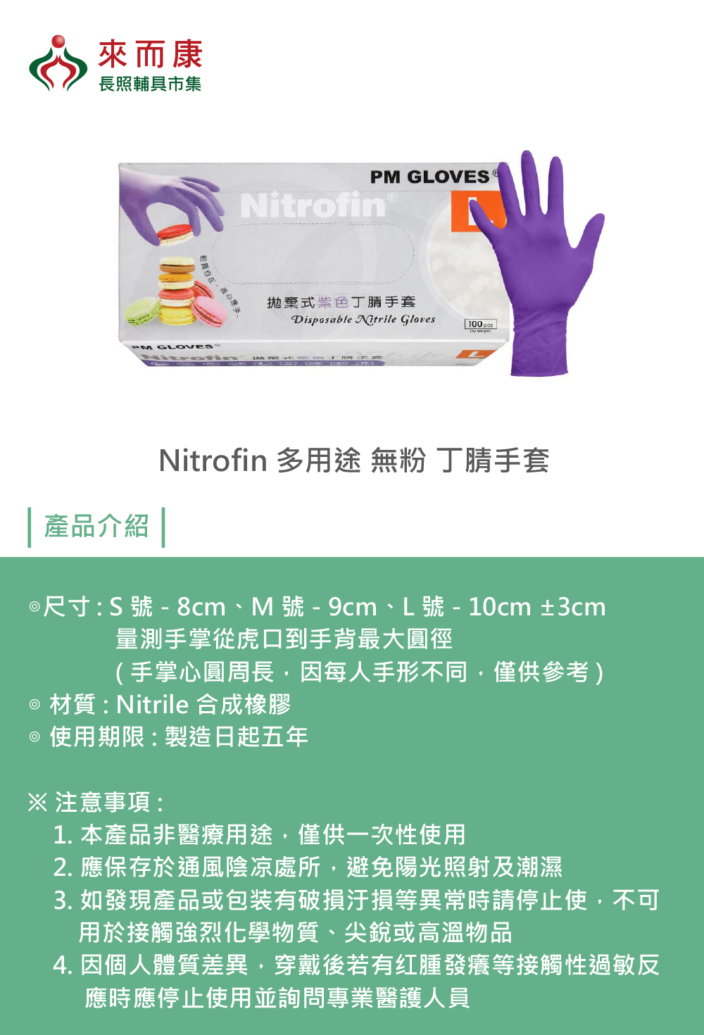 Nitrofin 多用途 無粉 丁腈手套 100入/盒 拋棄式 紫色 丁腈 防護 手套