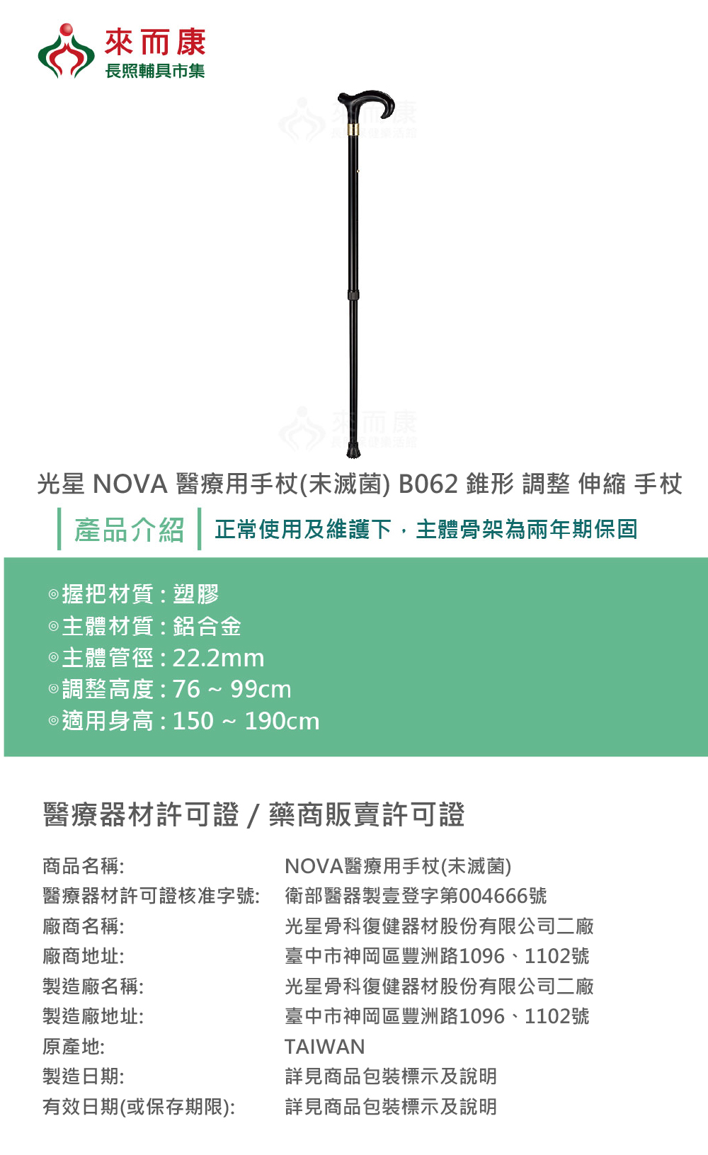 獨特的管塑型工法讓內套管的杖身外徑一路從 6/8" 縮小到 5/8",搭配上 7/8"(22.2mm) 的外管徑主體讓整體有著不同於一般單點手杖的錐形外觀設計。