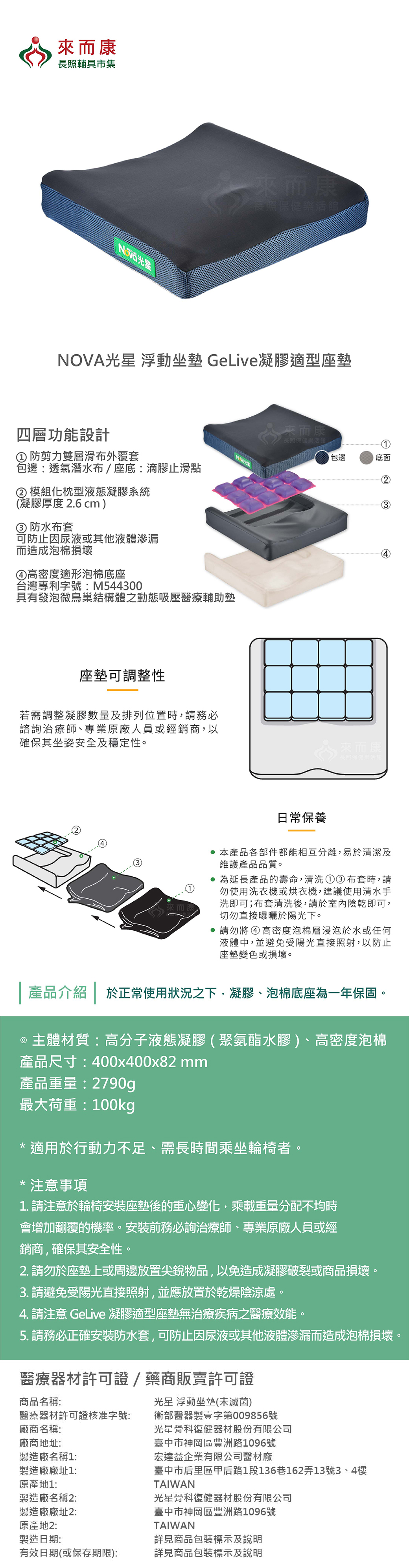 * 有發泡微鳥巢結構體之動態吸壓醫療輔助墊為底座支撐,結合模組化枕型液態凝膠系統設計而成。