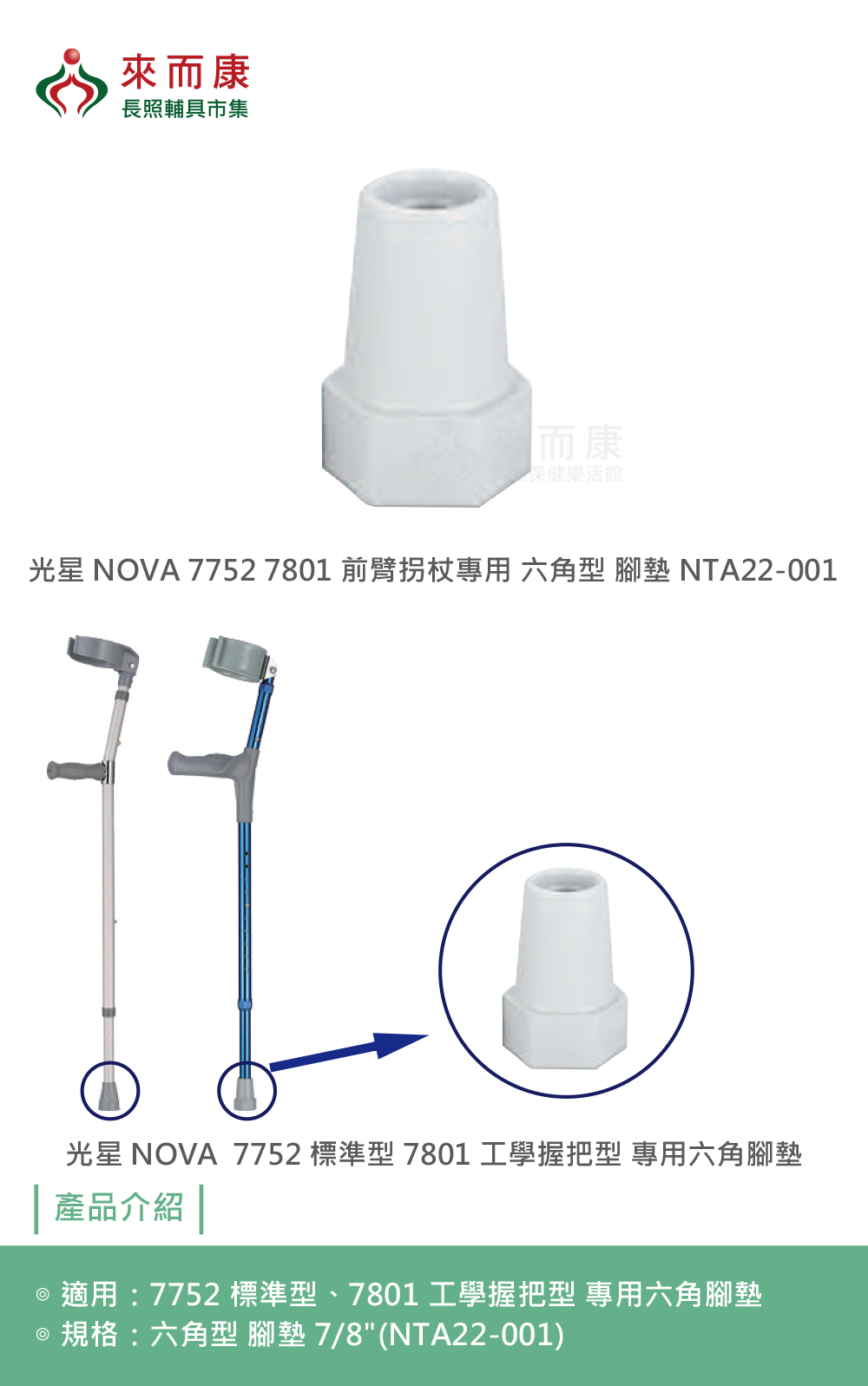 -7752 標準型、7801 工學握把型 專用六角腳墊 NTA22-001