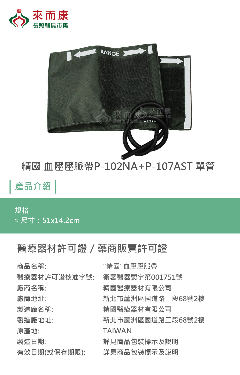 Spirit 精國 血壓壓脈帶 P-102NA+P-107AST 護士型 單管 氣袋 壓脈帶 販售內容不含血壓計主機