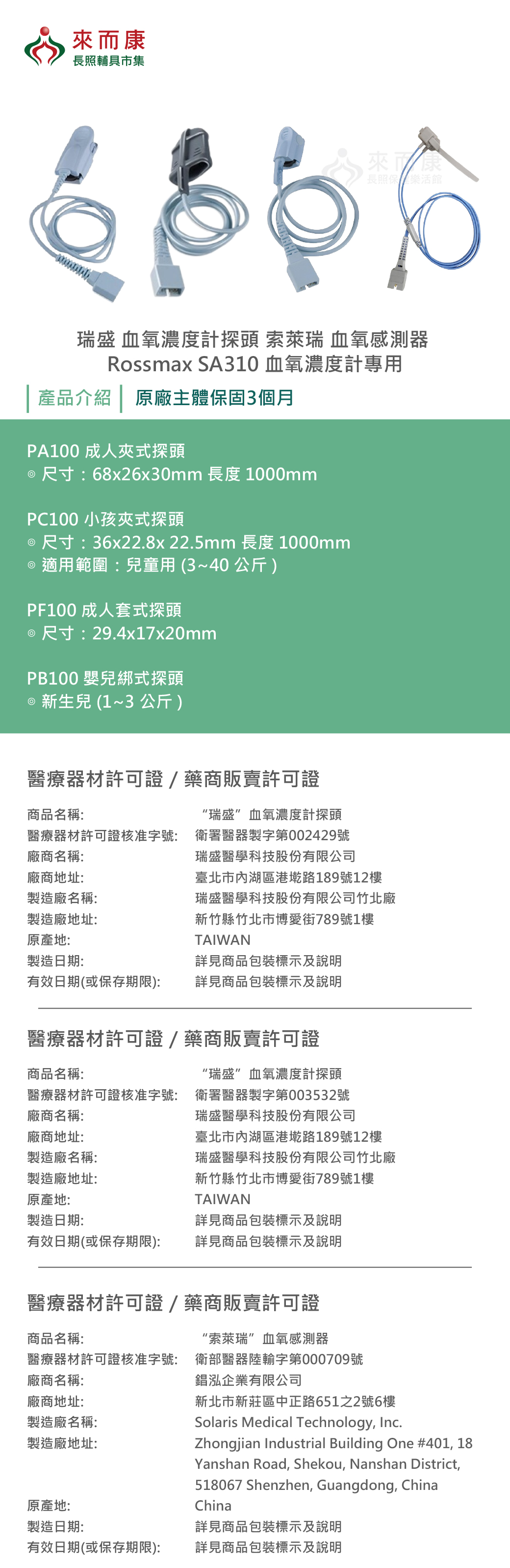 ◎ ROSSMAX SA310 血氧濃度計主機專用 探頭