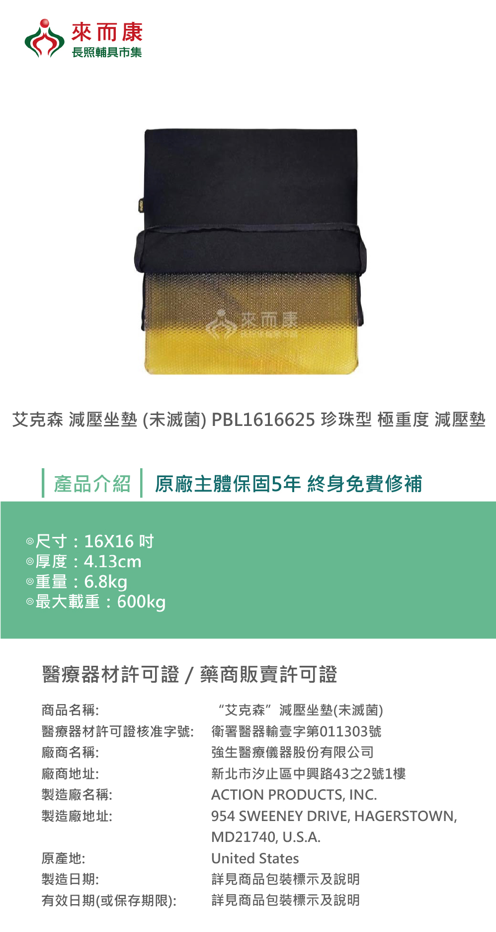 Action 艾克森 減壓坐墊(未滅菌) PBL1616625 珍珠型極重度減壓墊 珍珠加厚 脂肪墊 輪椅坐墊D款補助
