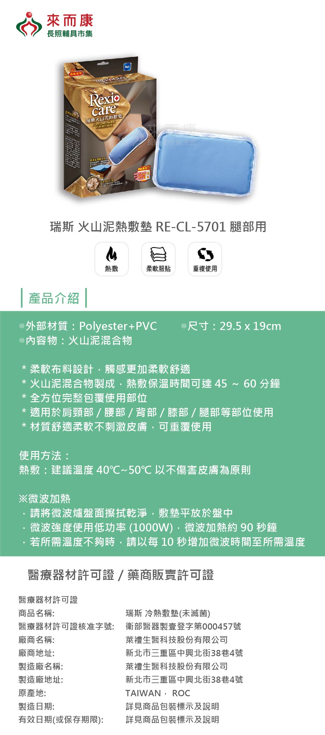 .火山泥混合物製成,熱敷保溫時間可達45~60分鐘