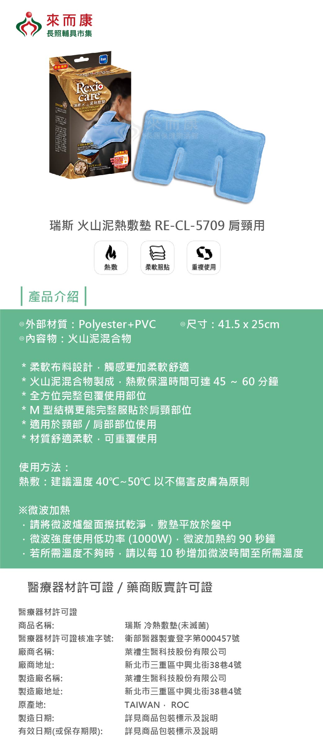 萊禮 瑞斯 冷熱敷墊 (未滅菌) 火山泥 熱敷墊 RE-CL-5709 肩頸用 限微波加熱 RECL5709