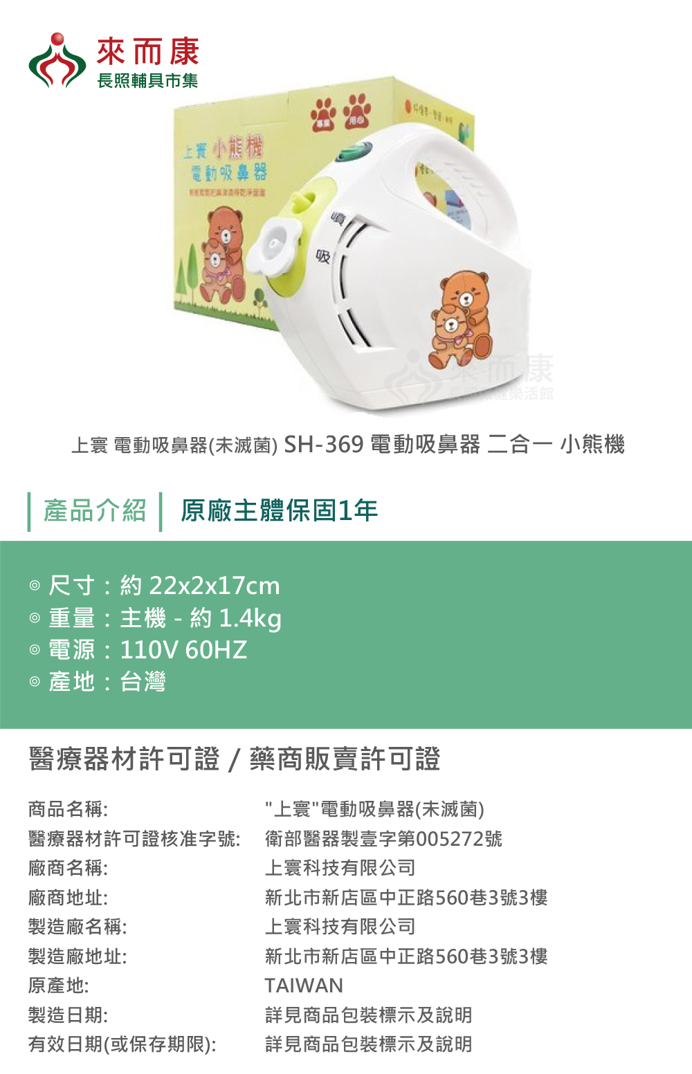 衛部醫器製壹字第005272號