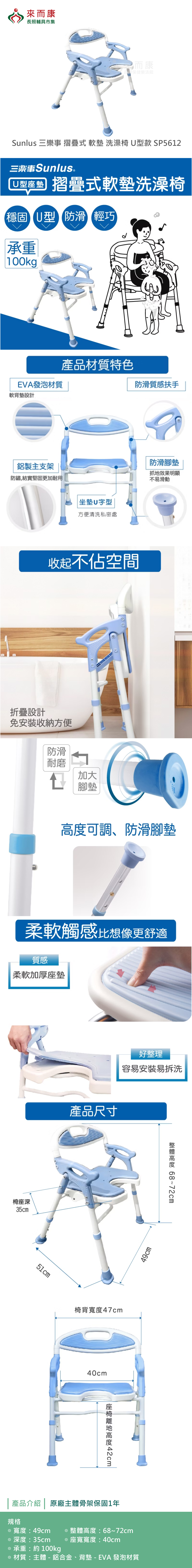-U型舒適軟墊、易清洗、易收折、收納