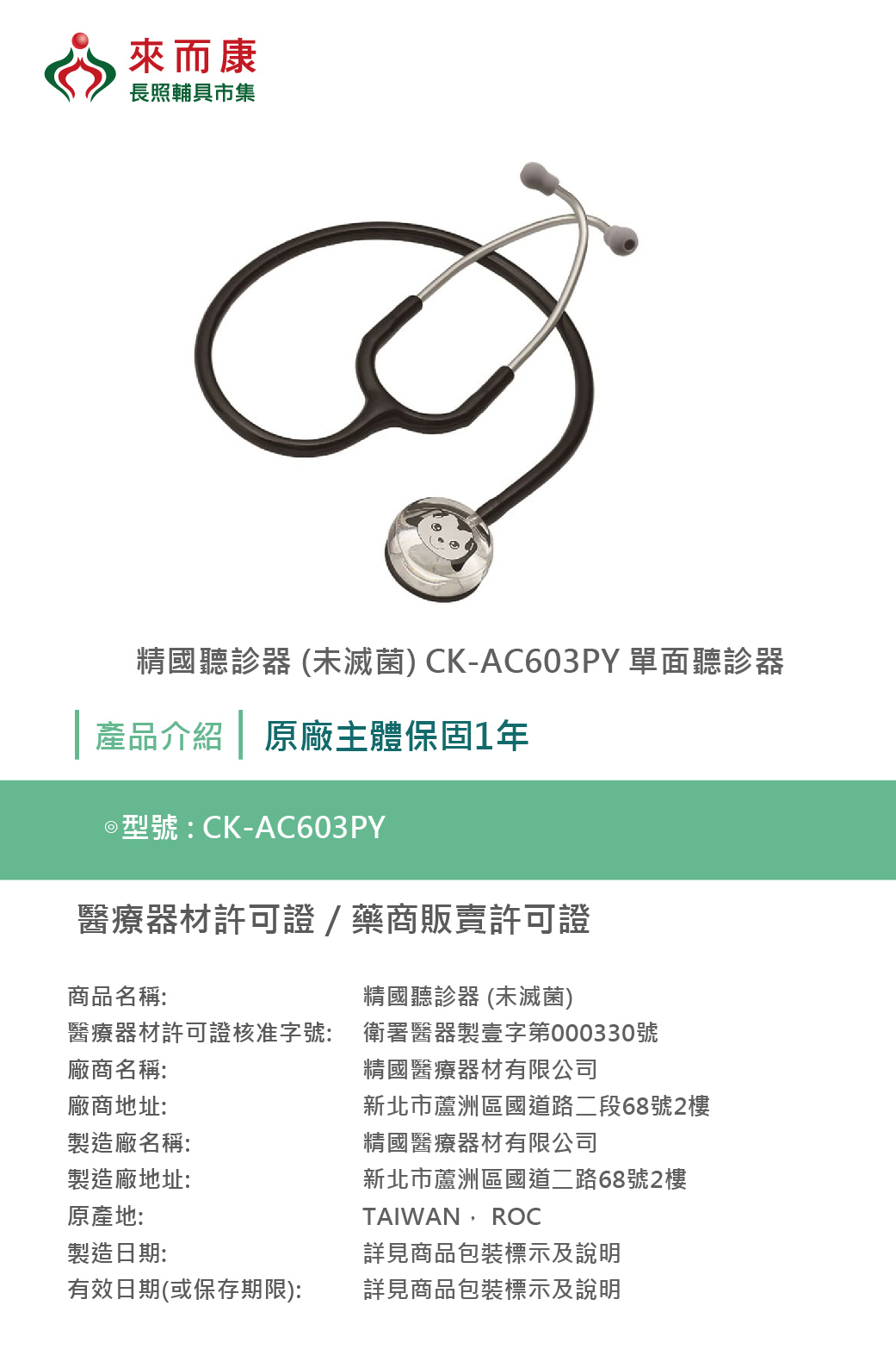 心鑽系列 Spirit 精國聽診器 (未滅菌) CK-AC603PY 單面聽診器 黑色 小狗 成人 聽診器 聽診器 AC603PY