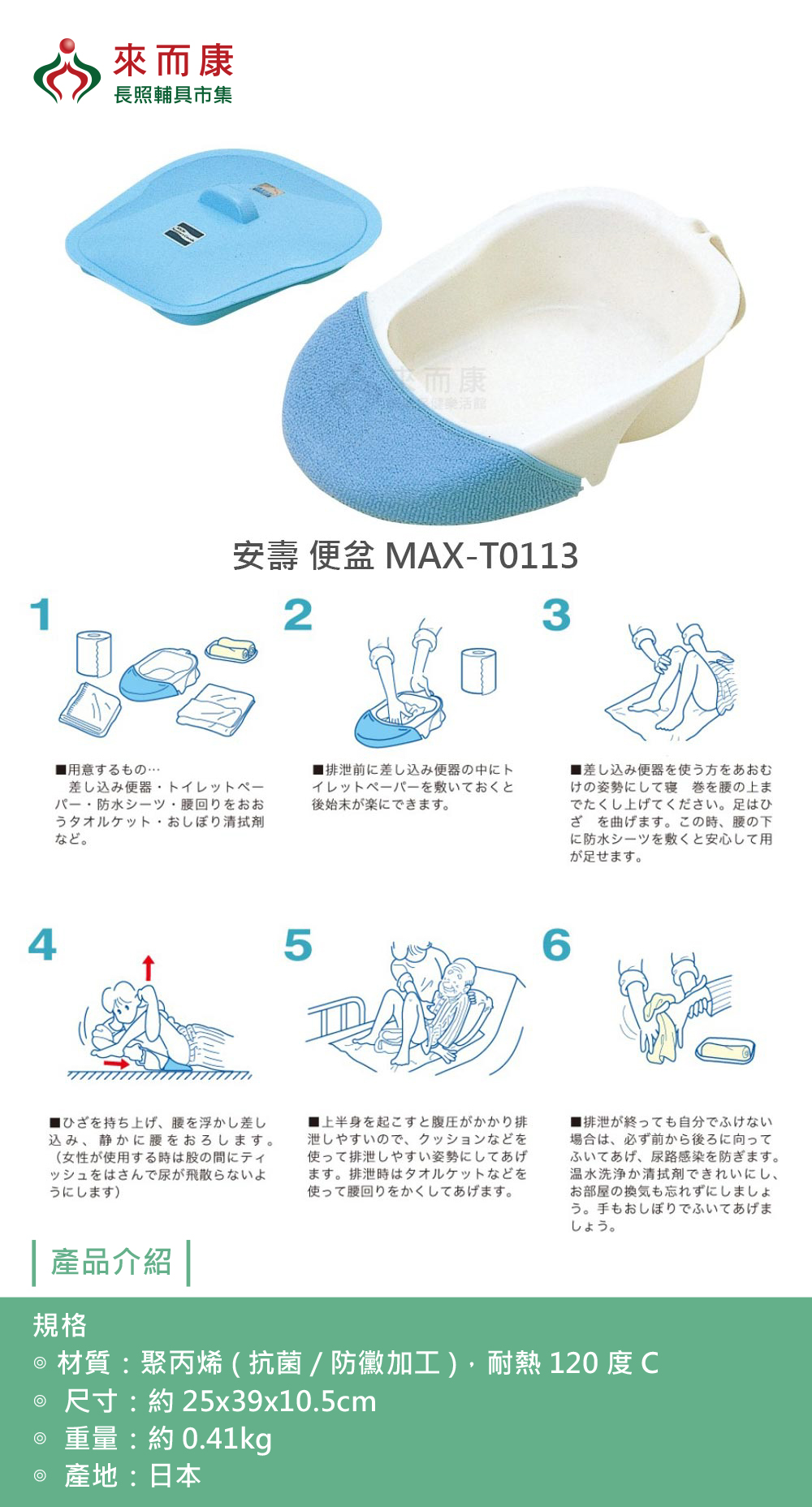 日本 安壽 便盆 MAX-T0113 便座 R258 簡易便盆 便桶 臥床便盆 臥式 接便器 MAXT0113