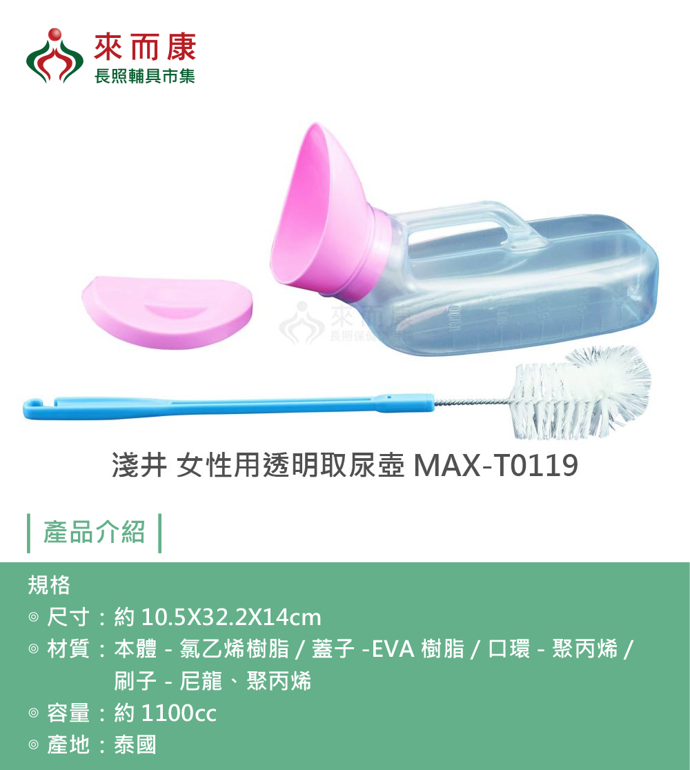 日本 淺井 女性用 透明 取尿壺 MAX-T0119 攜帶式 尿壺 R257 臥床 小便器 夜壺 MAXT0119