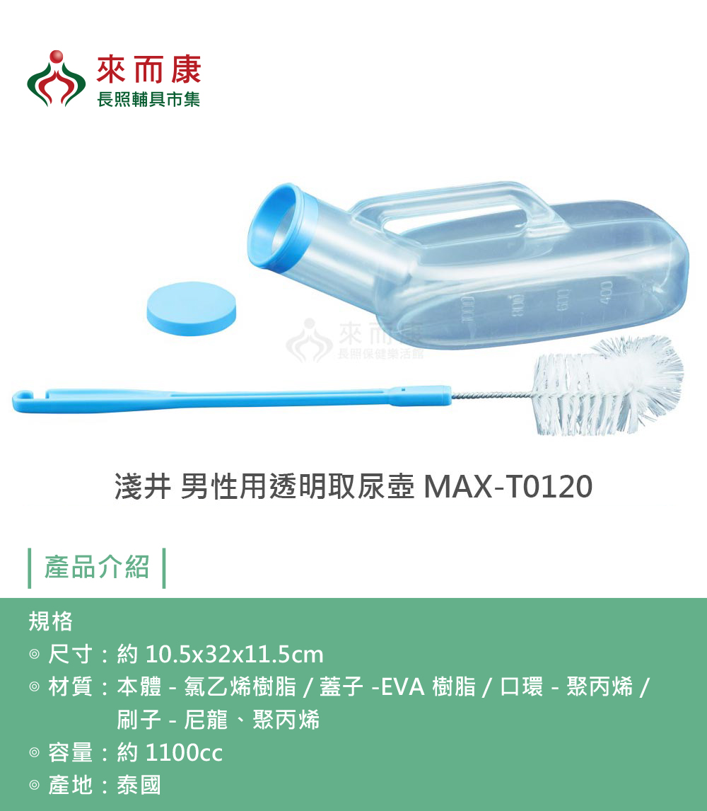 日本 淺井 男性用 透明 取尿壺 MAX-T0120 攜帶式 尿壺 R256 臥床 小便器 夜壺 MAXT0120