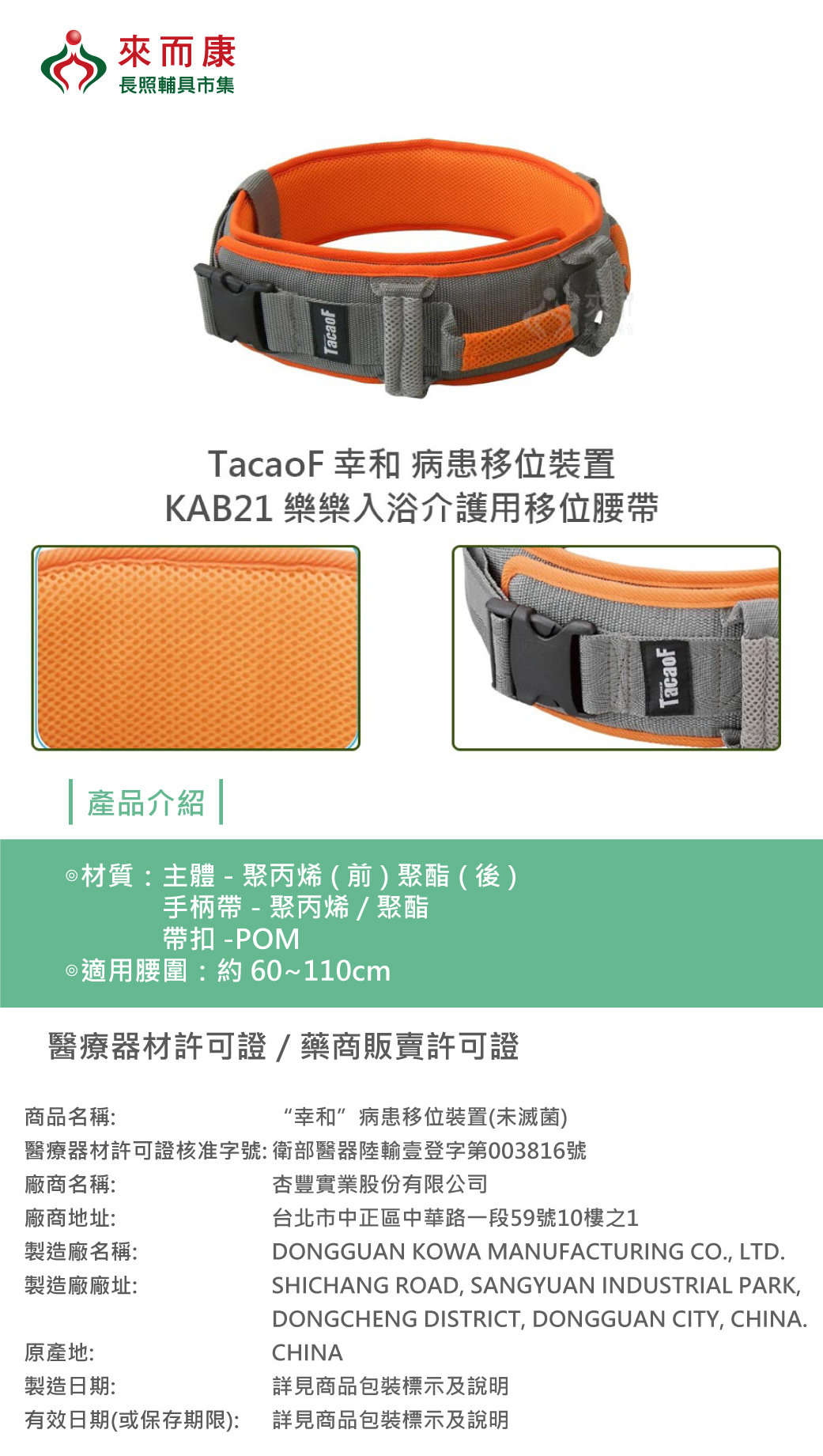衛部醫器陸輸壹登字第003816號