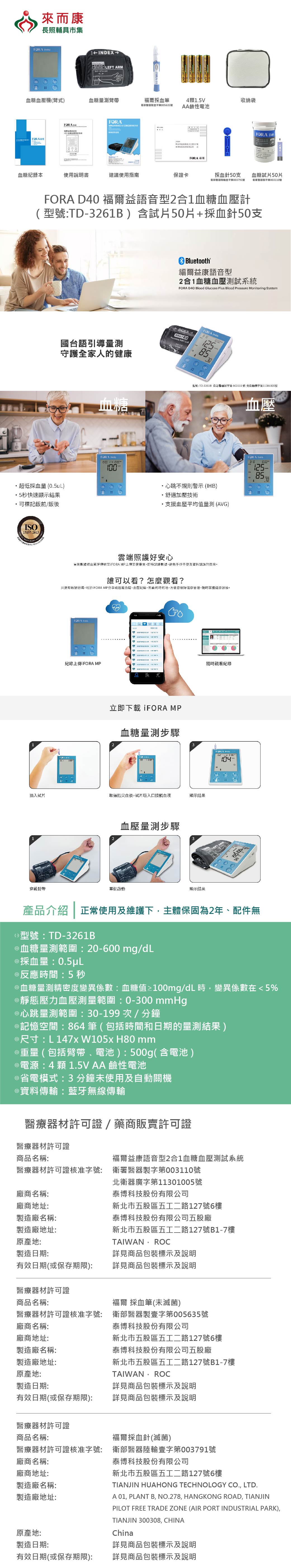 福爾益康語音型2合1血糖血壓測試系統:衛署醫器製字第003110號 北衛器廣字第11301005號
