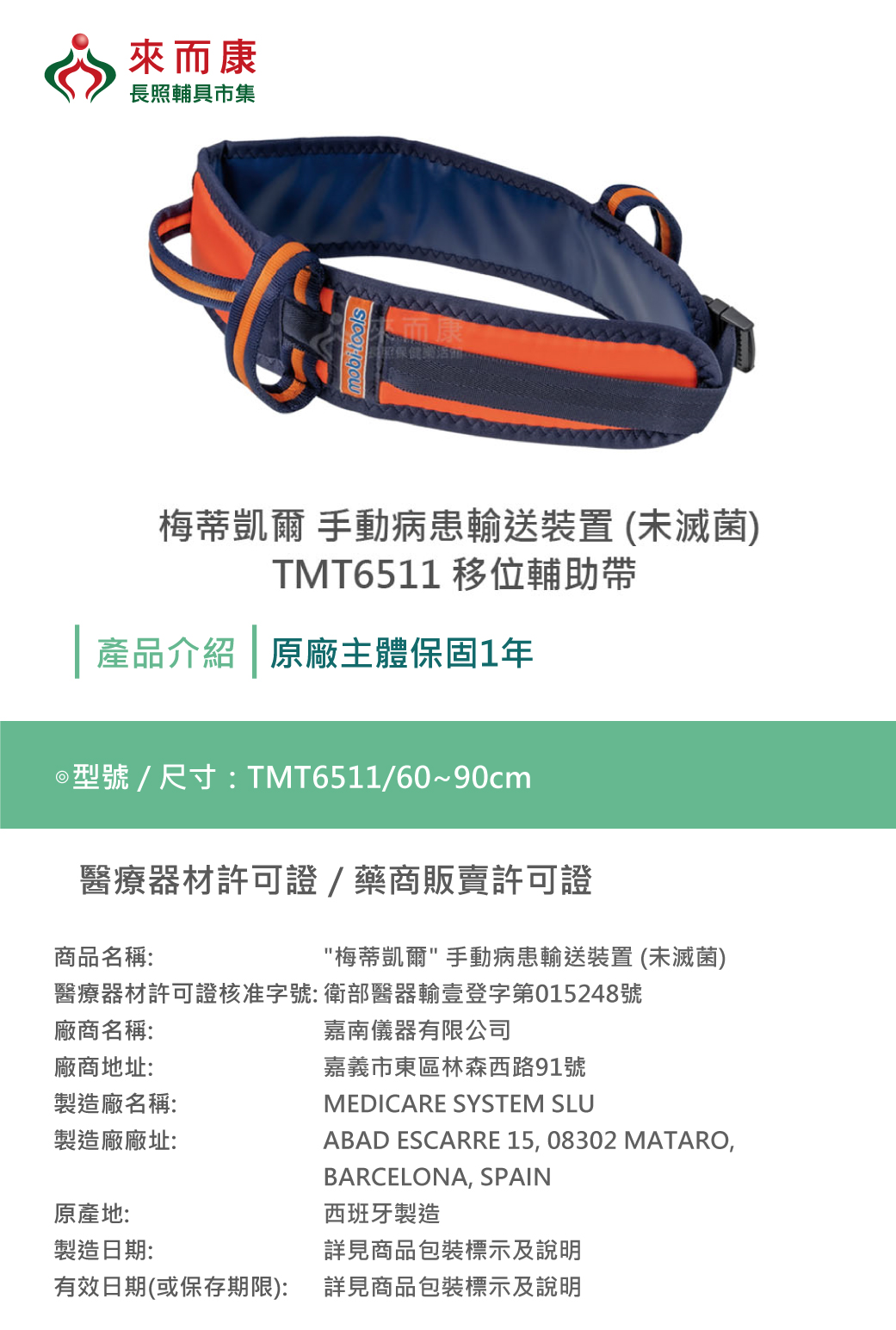 梅蒂凱爾 手動病患輸送裝置 (未滅菌) TMT6511 移位輔助帶 移位腰帶補助 小尺寸