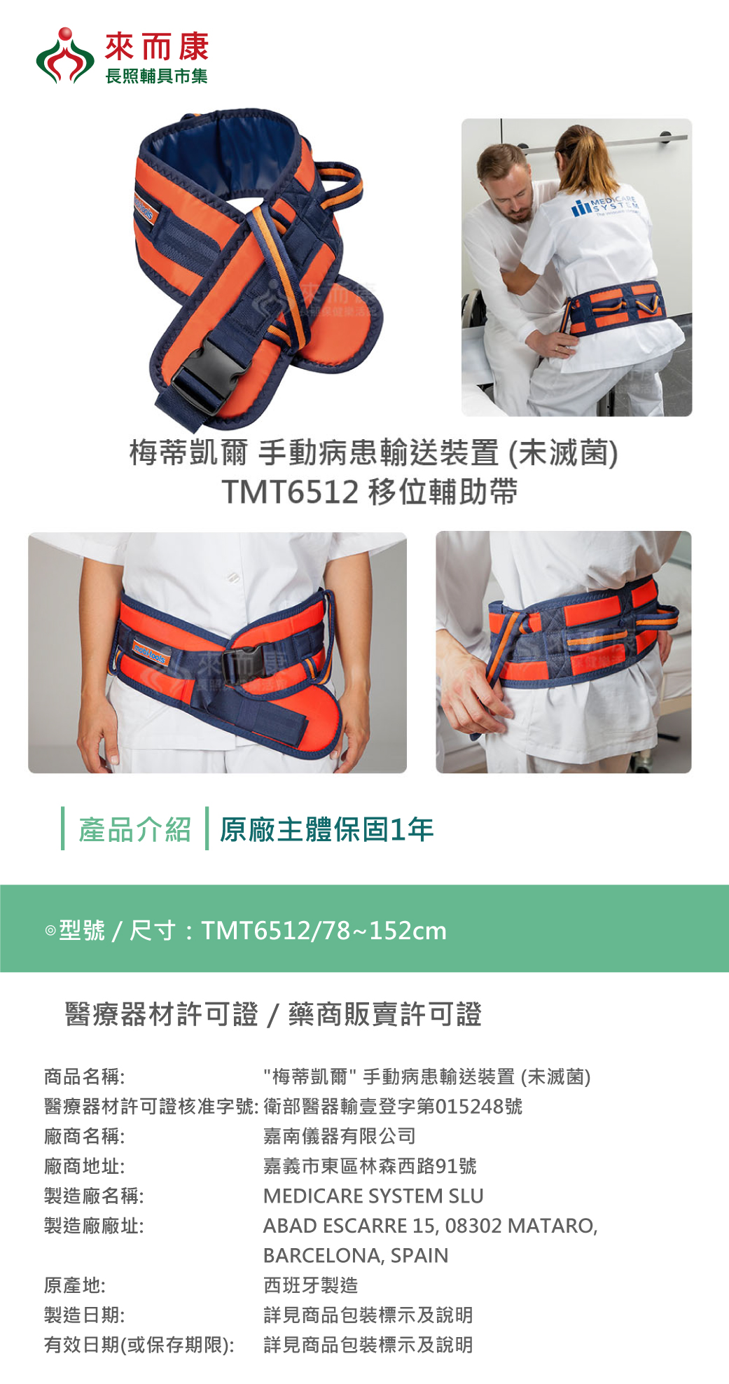 梅蒂凱爾 手動病患輸送裝置 (未滅菌) TMT6512 移位輔助帶 移位腰帶補助 中尺寸