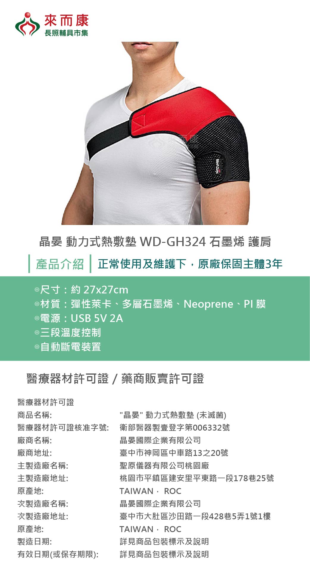 WELL-DAY 晶晏 動力式熱敷墊 WD-GH324 石墨烯溫控熱敷 護肩 熱敷 WDGH324