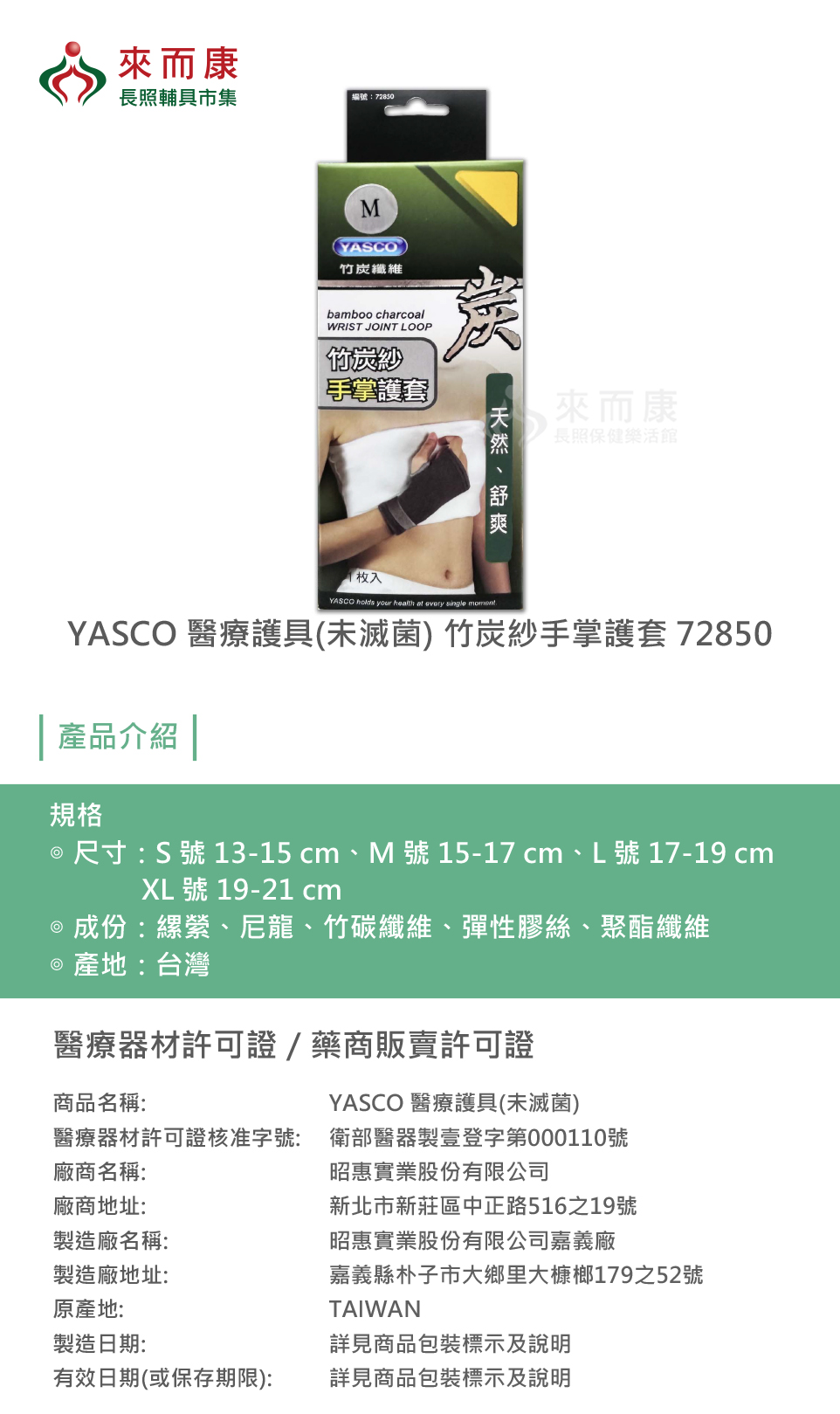 YASCO 醫療護具(未滅菌) 竹炭紗手掌護套 72850 竹炭紗 手掌 護掌 護掌套 手掌套 護具