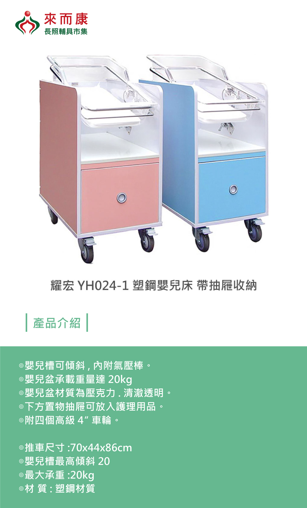 耀宏 塑鋼 嬰兒床 YH024-1 可傾斜 含抽屜 寶寶 照顧床 移動床 推車 YH0241