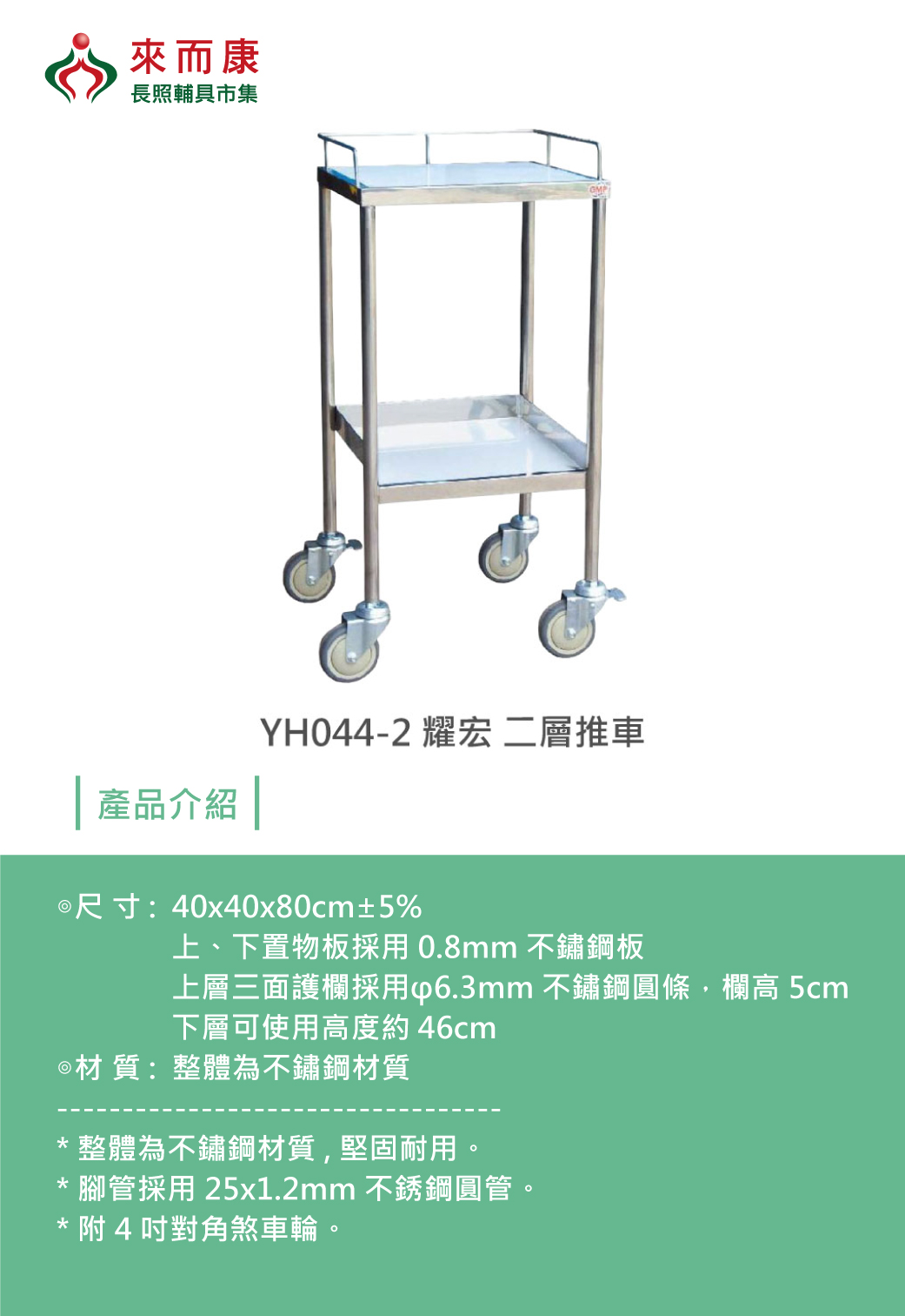 . 腳管採用25 x 1.2mm不鏽鋼圓管