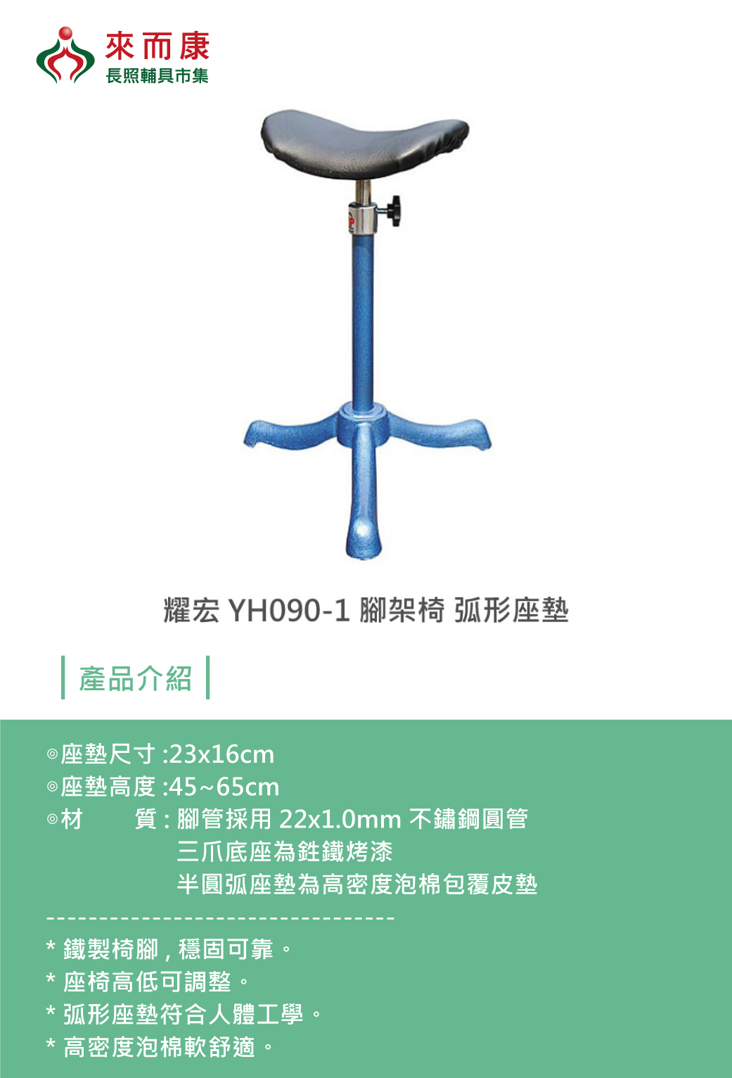 耀宏 YH090-1 腳架椅 弧形座墊 三爪 高度可調 不鏽鋼跨板 旋轉鈕高度調整 三角底座腳架 弧型墊