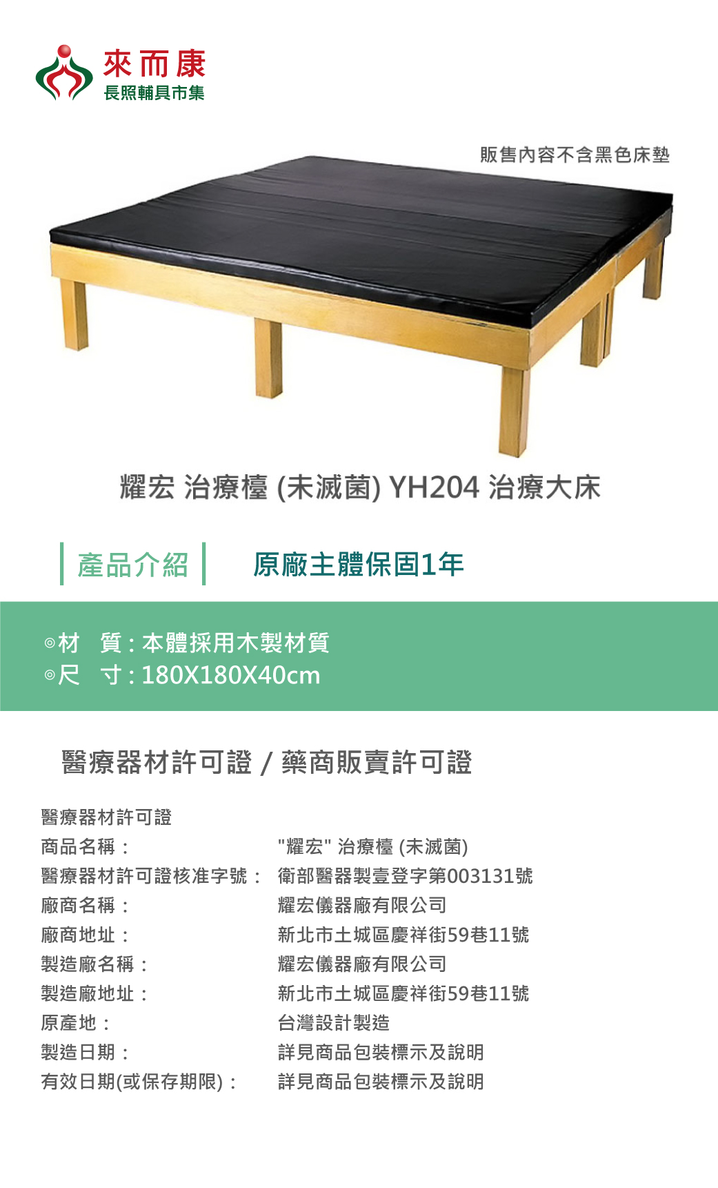 耀宏 治療檯 (未滅菌) YH204 治療大床 不含床墊 推拿床 按摩床 診療床 治療床 護理床