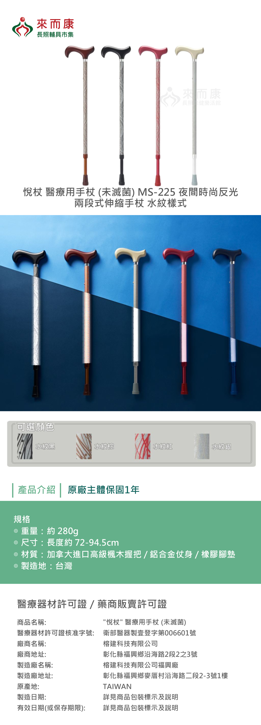 Merry Sticks 悅杖 醫療用手杖(未滅菌) MS-225 夜間 時尚 反光 兩段式 伸縮手杖 水紋樣式 MS225