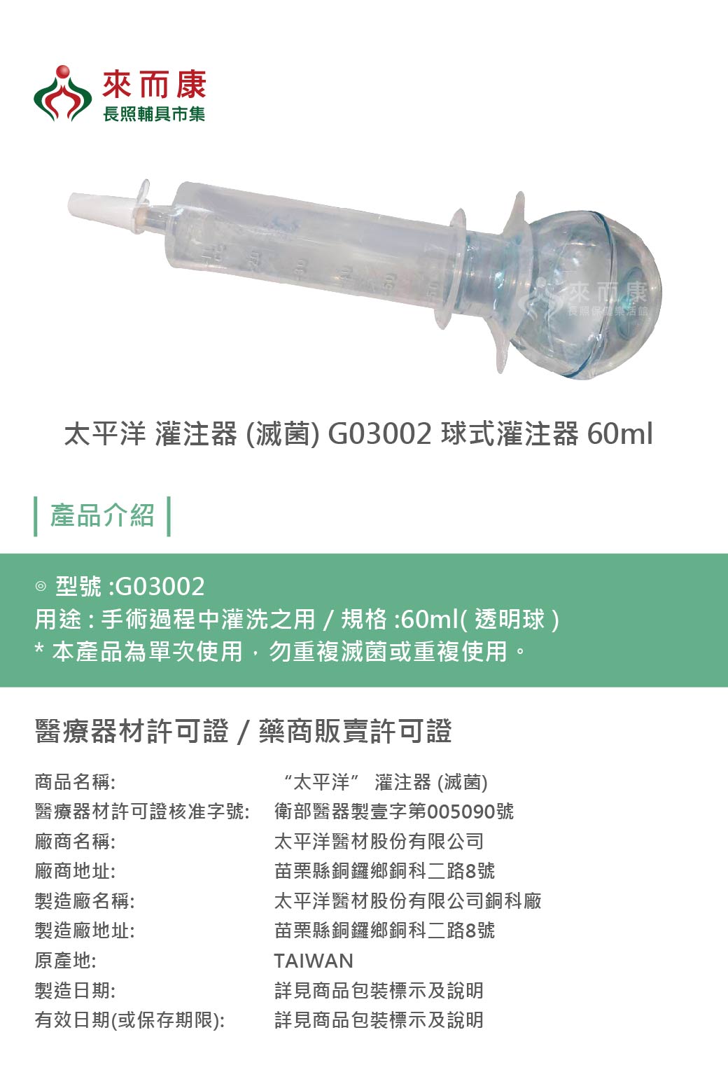 太平洋 灌注器 (滅菌) G03002 球式灌注器 60ml 10包販售
