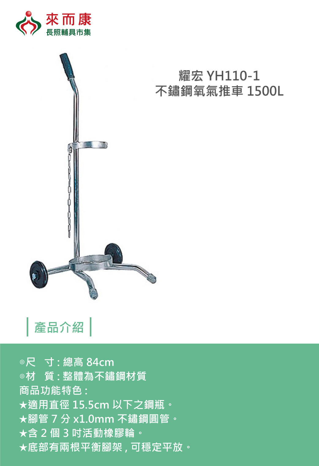 耀宏 YH110-1 不鏽鋼氧氣推車 1500L 來電詢價享優惠